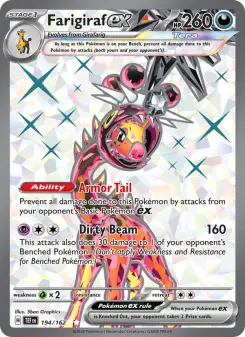 Every Farigiraf Ex card across 1 Pokemon TCG sets. Browse art, track values, and complete your collection.